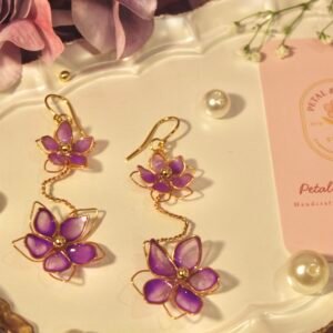 Elegant and eye-catching, the Petal Vine Earrings feature two handcrafted floral blooms linked by a twisted gold-tone vine that sways gracefully as you move. Made with translucent resin petals, 18k gold-filled bead centers, and 18k gold-plated hooks, they’re both hypoallergenic and tarnish-resistant — perfect for sensitive ears and long-lasting shine!