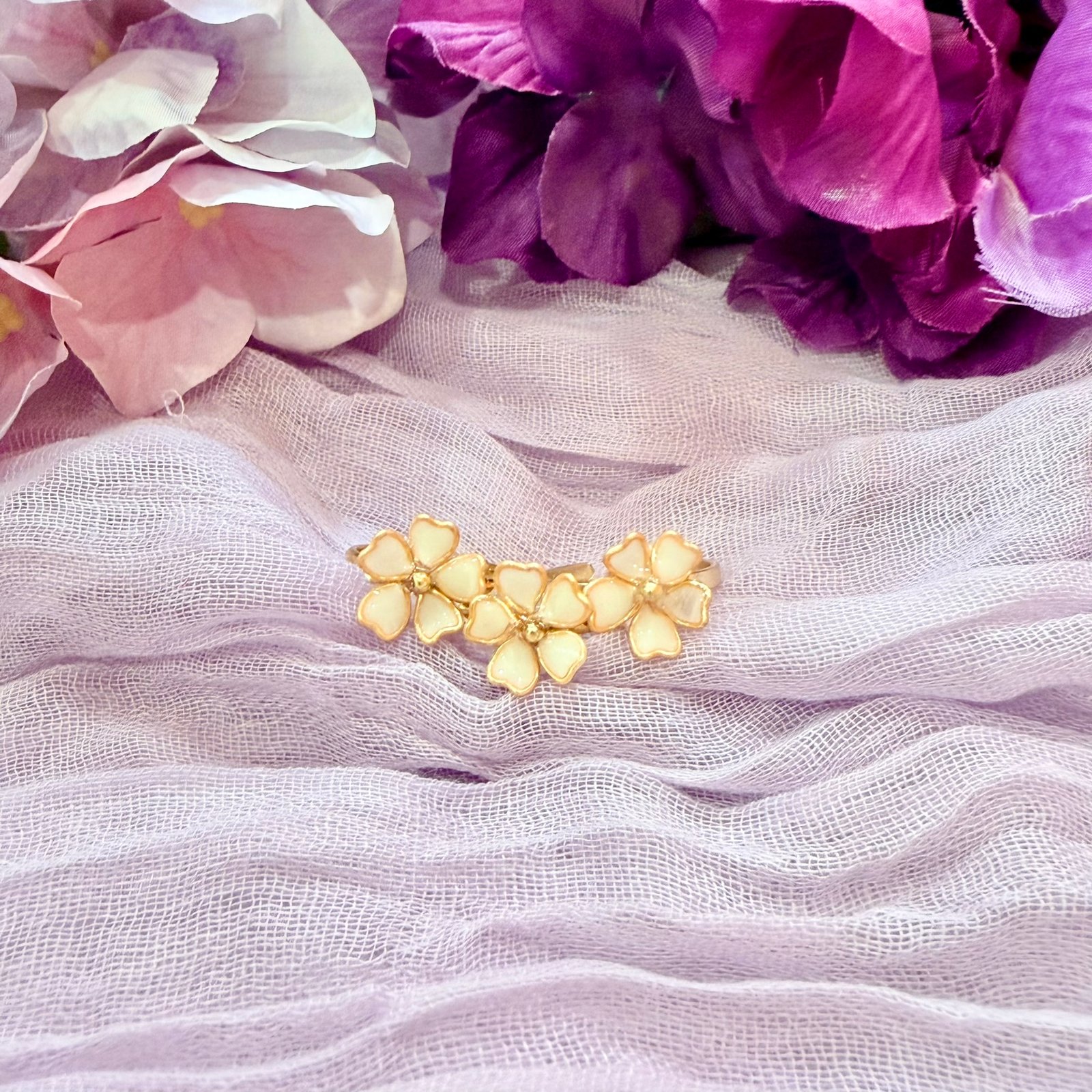 A graceful symbol of love, renewal, and fleeting beauty — the Sakura Ring is a signature piece for the Petal and Pearl collection.